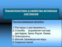 Характеристики и свойства истинных растворов Рассматриваемые вопросы 1