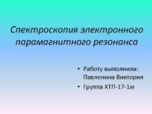 Спектроскопия электронного парамагнитного резонанса Работу выполнила Павленина