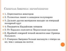 СЕВЕРНАЯ АМЕРИКА ВЕРНО НЕВЕРНО 1 Пересекается экватором 2 Полностью