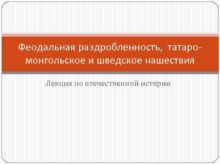 Феодальная раздробленность татаромонгольское и шведское нашествия Лекция по