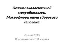 Основы экологической микробиологии Микрофлора тела здорового человека Лекция