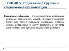 ЛЕКЦИЯ 5 Социальные группы и социальные организации Социальные