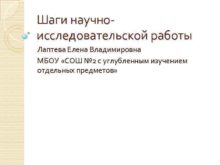 Шаги научно исследовательской работы Лаптева Елена Владимировна МБОУ