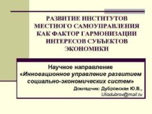 РАЗВИТИЕ ИНСТИТУТОВ МЕСТНОГО САМОУПРАВЛЕНИЯ КАК ФАКТОР ГАРМОНИЗАЦИИ ИНТЕРЕСОВ