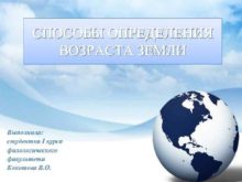 СПОСОБЫ ОПРЕДЕЛЕНИЯ ВОЗРАСТА ЗЕМЛИ Выполнила студентка I курса