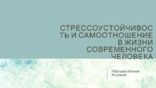 СТРЕССОУСТОЙЧИВОС ТЬ И САМООТНОШЕНИЕ В ЖИЗНИ СОВРЕМЕННОГО ЧЕЛОВЕКА