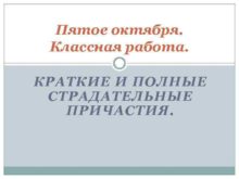 Пятое октября Классная работа КРАТКИЕ И ПОЛНЫЕ СТРАДАТЕЛЬНЫЕ