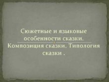 Сюжетные и языковые особенности сказки Композиция сказки Типология