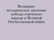Всемирноисторическое значение победы советского народа в Великой Отечественной