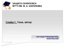 ЗАЩИТА СИНОПСИСА МГГУ ИМ М А ШОЛОХОВА Слайд