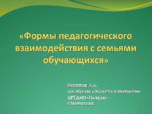 Формы педагогического взаимодействия с семьями обучающихся Никитина