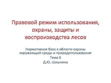 Правовой режим использования охраны защиты и воспроизводства лесов