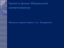 Проект по физике Механический электрогенератор Выполнил студент группы