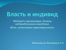 Власть и индивид Индивид и организация Основы индивидуального