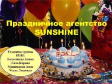 Праздничное агентство SUNSHINE Студенты группы 03105 Волостнова Алина