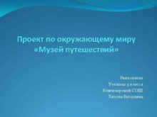 Проект по окружающему миру Музей путешествий Выполнила Ученица