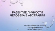 РАЗВИТИЕ ЛИЧНОСТИ ЧЕЛОВЕКА В АВСТРАЛИИ ФАКУЛЬТЕТ ФИЗИЧЕСКОЙ КУЛЬТУРЫ