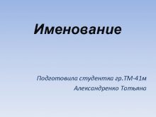 Именование Подготовила студентка гр ТМ-41 м Александренко Татьяна