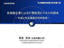 2008年 9月5日 日本経営学会第 82回全国大会 多国籍企業による21世紀型ビジネスの探求 利益と社会貢献の同時実現 菅原 秀幸 北海学園大学 http