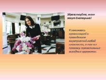 Здравствуйте меня зовут Екатерина Я занимаюсь организацией и