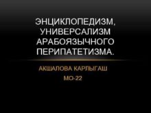 ЭНЦИКЛОПЕДИЗМ УНИВЕРСАЛИЗМ АРАБОЯЗЫЧНОГО ПЕРИПАТЕТИЗМА АКШАЛОВА КАРЛЫГАШ МО-22