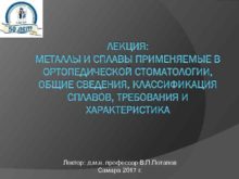 ЛЕКЦИЯ МЕТАЛЛЫ И СПЛАВЫ ПРИМЕНЯЕМЫЕ В ОРТОПЕДИЧЕСКОЙ СТОМАТОЛОГИИ