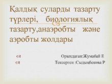 Қалдық суларды тазарту түрлері биологиялық тазарту анаэробты және