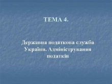 ТЕМА 4 Державна податкова служба України Адміністрування податків