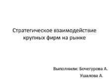 Стратегическое взаимодействие крупных фирм на рынке Выполнили Бочегурова