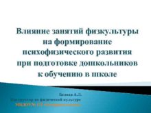 Влияние занятий физкультуры на формирование психофизического развития при