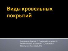 Виды кровельных покрытий Выполнили Букина Е Соколов Н