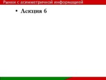 Рынки с асимметричной информацией Лекция 6