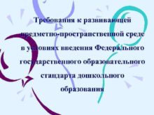 Требования к развивающей предметно-пространственной среде в условиях введения