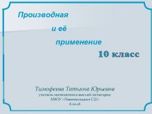 Производная и её применение Тимофеева Татьяна Юрьевна учитель