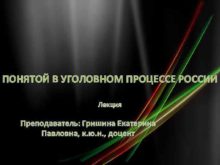 ПОНЯТОЙ В УГОЛОВНОМ ПРОЦЕССЕ РОССИИ Лекция Преподаватель Гришина