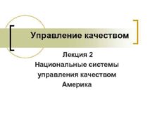 Управление качеством Лекция 2 Национальные системы управления качеством