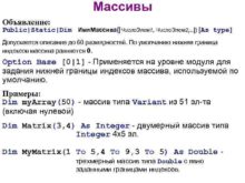 Массивы Объявление Public Static Dim Имя Массива Число Элем 1 Число