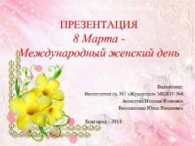 ПРЕЗЕНТАЦИЯ 8 Марта Международный женский день Выполнили Воспитатели