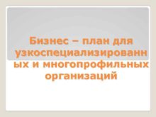 Бизнес план для узкоспециализированн ых и многопрофильных