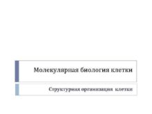 Молекулярная биология клетки Структурная организация клетки Структура