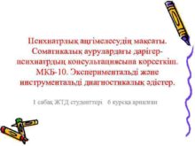 Психиатрлық аңгімелесудің мақсаты Соматикалық аурулардағы дарігерпсихиатрдың консультациясына корсеткіш