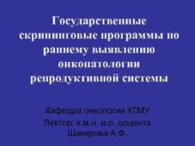 Государственные скрининговые программы по раннему выявлению онкопатологии репродуктивной