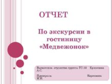 ОТЧЕТ По экскурсии в гостиницу Медвежонок Выполнила студентка