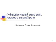 Публицистический стиль речи Реклама в деловой речи Бакланова