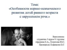 Тема Особенности нервно-психического развития детей раннего возраста с