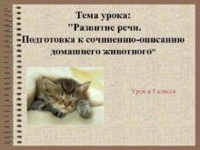Тема урока Развитие речи Подготовка к сочинению-описанию домашнего
