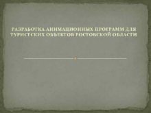 РАЗРАБОТКА АНИМАЦИОННЫХ ПРОГРАММ ДЛЯ ТУРИСТСКИХ ОБЪЕКТОВ РОСТОВСКОЙ ОБЛАСТИ