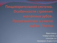 Пищеварительная система Особенности строения молочных зубов Прорезывание и
