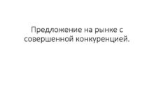 Предложение на рынке с совершенной конкуренцией Рациональный