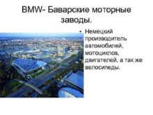 BMW- Баварские моторные заводы Немецкий производитель автомобилей